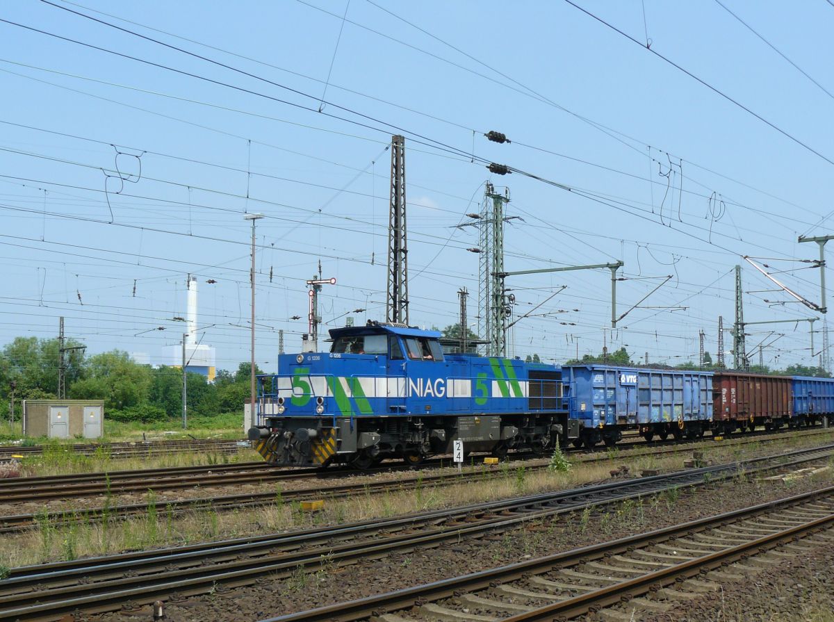 Eanos vierassige hoge bakwagen van de ÖBB met nummer 31 TEN-RIV 81 A-ÖBB 5376 082-8 rangeerstation Gremberg, Keulen, Duitsland 20-05-2016.16.6.2016 Eanos offener Drehgestell-Wagen der ÖBB mit ...